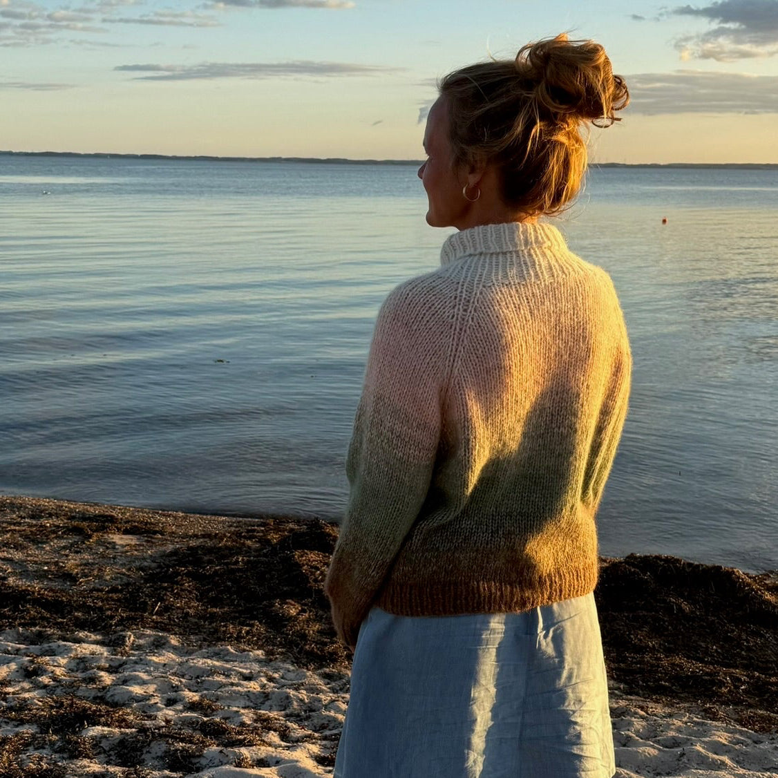 Der Waterkant Tröje ist ein muckelig warmer Pullover für kühle Sommerabende oder einen Spaziergang am Meer – oder wo auch immer Dir ein schöner, warmer Pullover fehlt. Strick ihn Wahlweise einfarbig oder mit Farbverlauf. Dank des einfachen Strickmusters eignet sich das Projekt auch perfekt für Strickanfängerinnen.